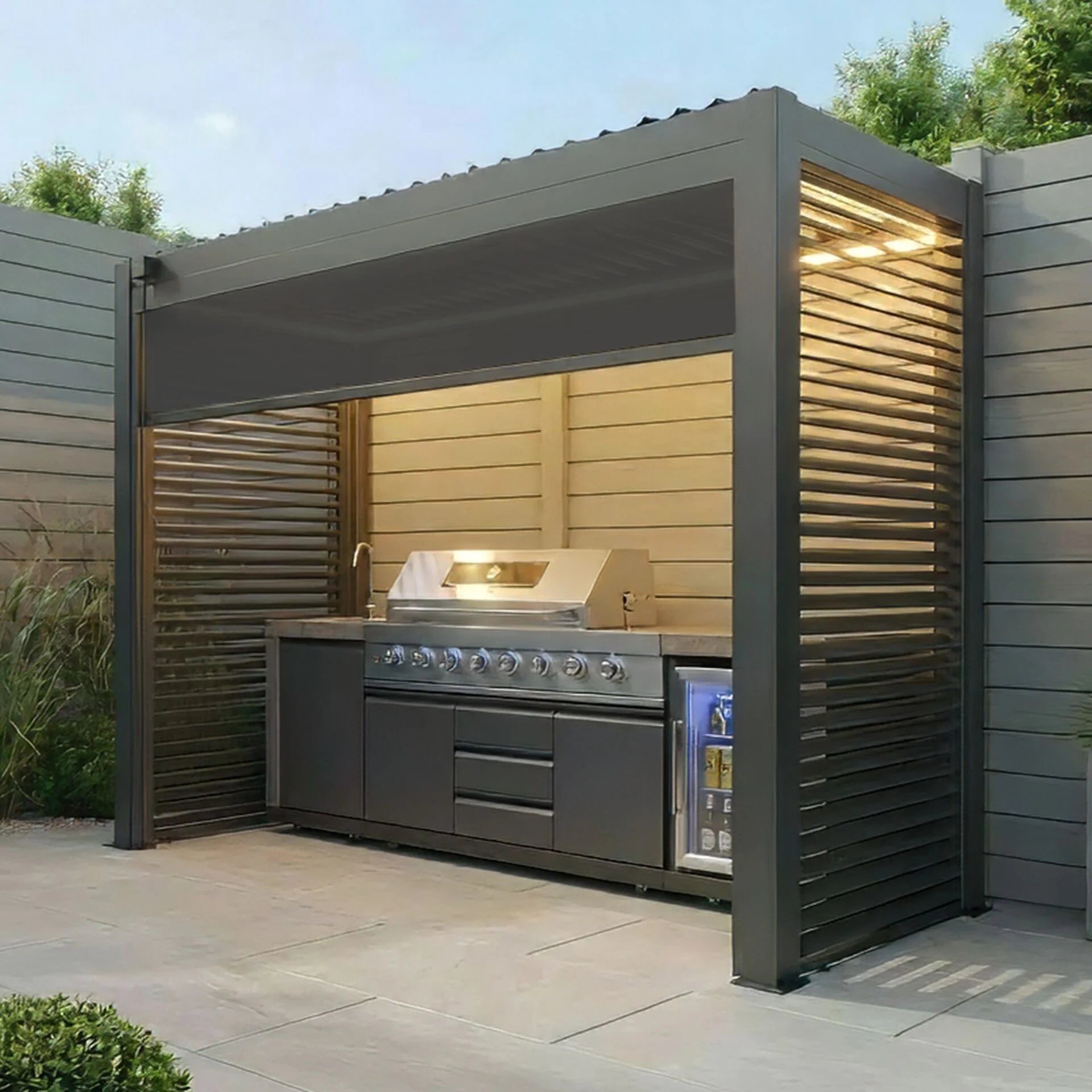 Como Freestanding BBQ Shelter With Louvres & Blind