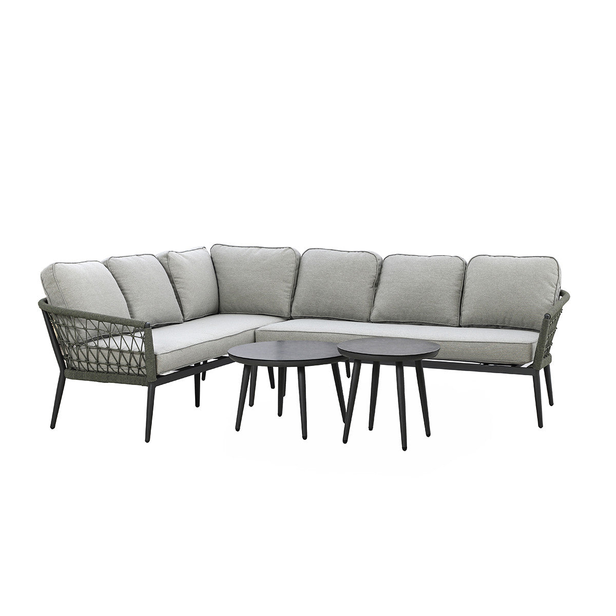 Elevate your outdoor space into a luxurious haven with the Avery Rectangular Large Corner Sofa Set with Pair of Round Coffee Tables. This comfortable rectangular corner sofa group complete with two contemporary round nesting tables seamlessly suits any indoor or exterior setting whether that’s an orangery, conservatory, or modern garden room.