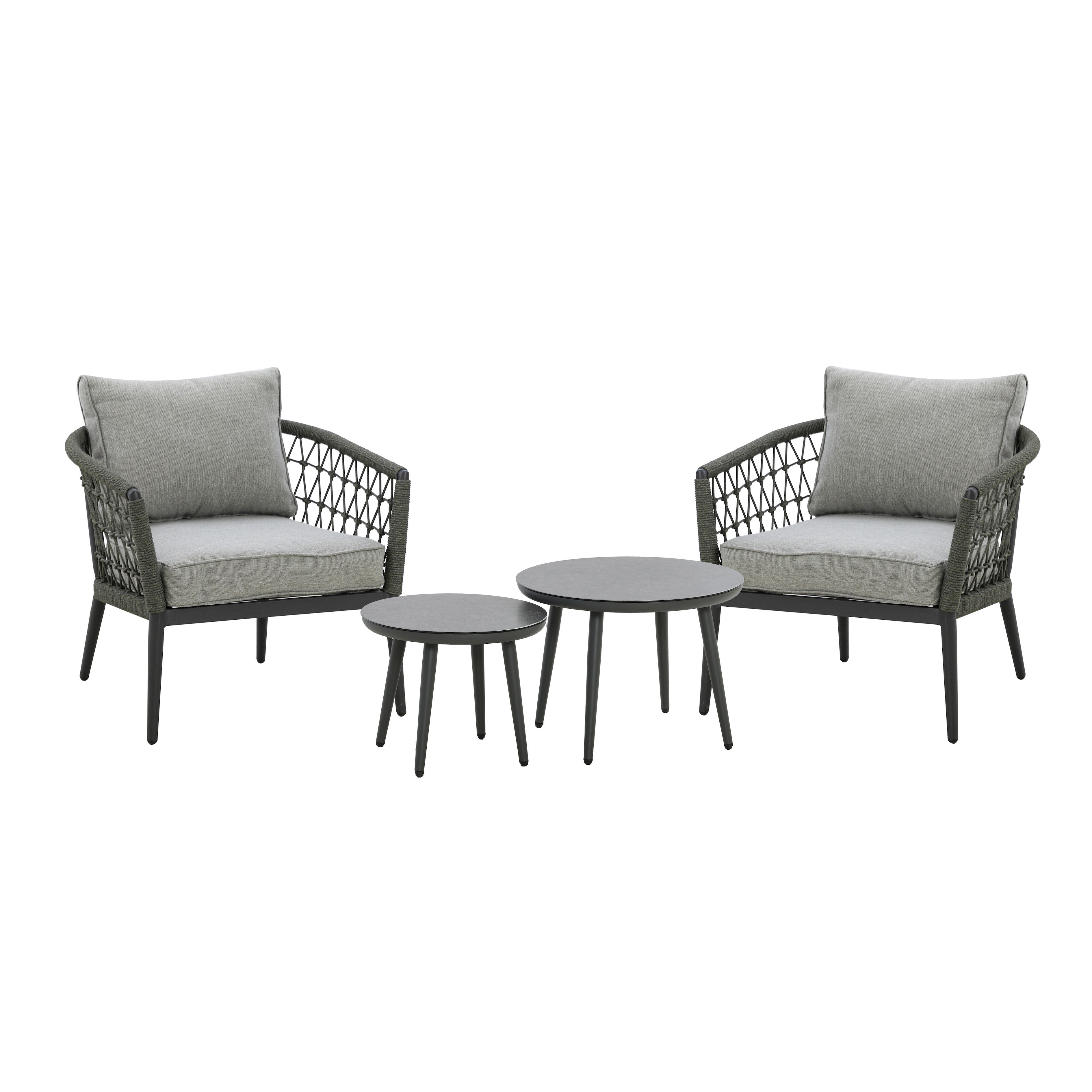Elevate your outdoor space into a luxurious haven with the Avery Lounge Set. The 2 individual armchairs are paired with contemporary round nesting tables that seamlessly suit any indoor or exterior setting whether that’s an orangery, conservatory, or modern garden room.
