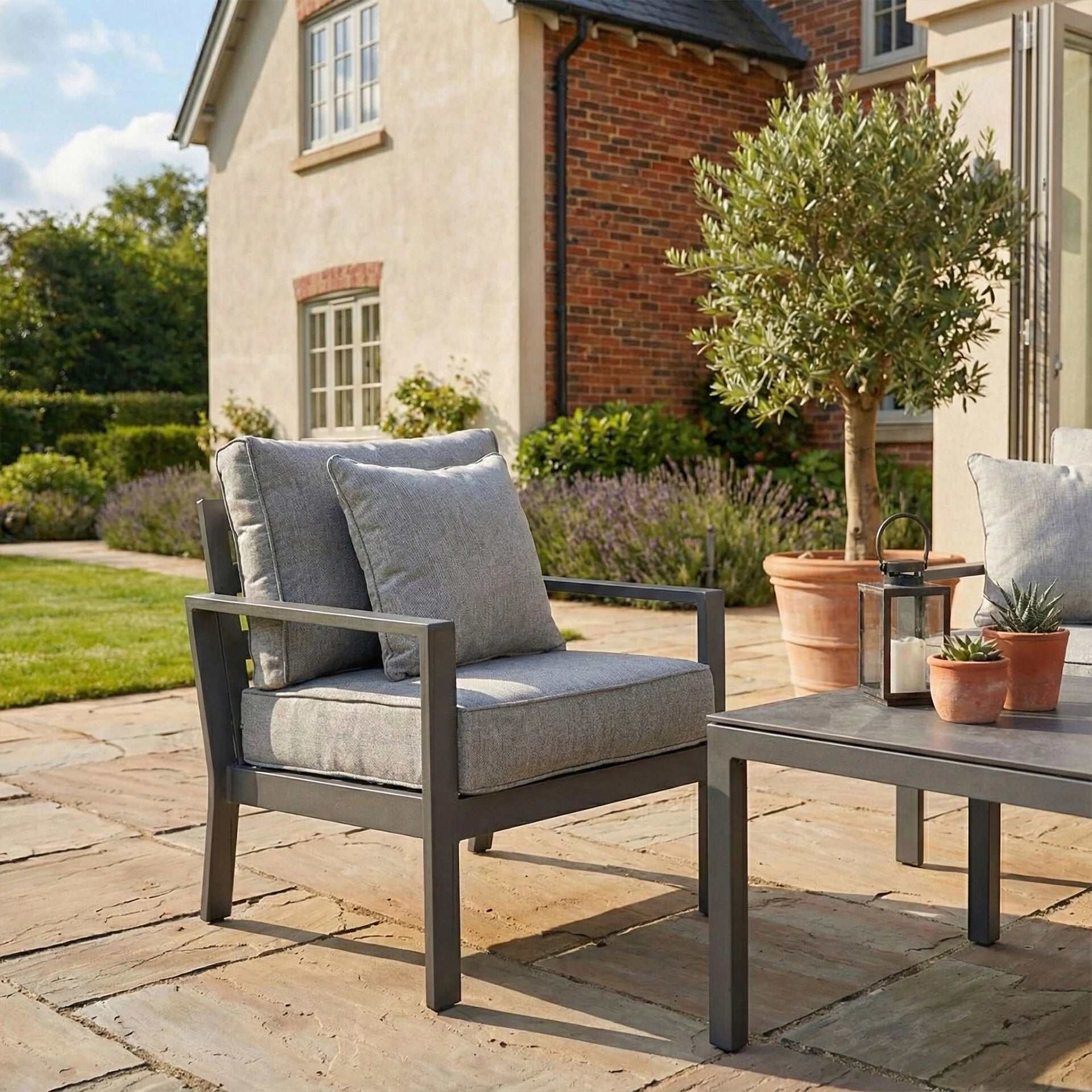 The plush cushions, crafted from SeasonSure fabric, shrug off light rain so you can leave them outside with confidence. For added peace of mind when winter arrives, a protective cover is available separately to keep your set looking its best.