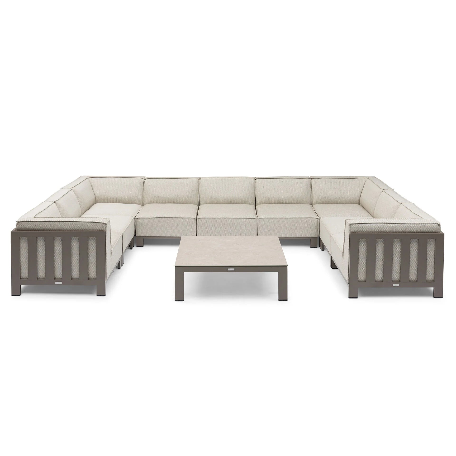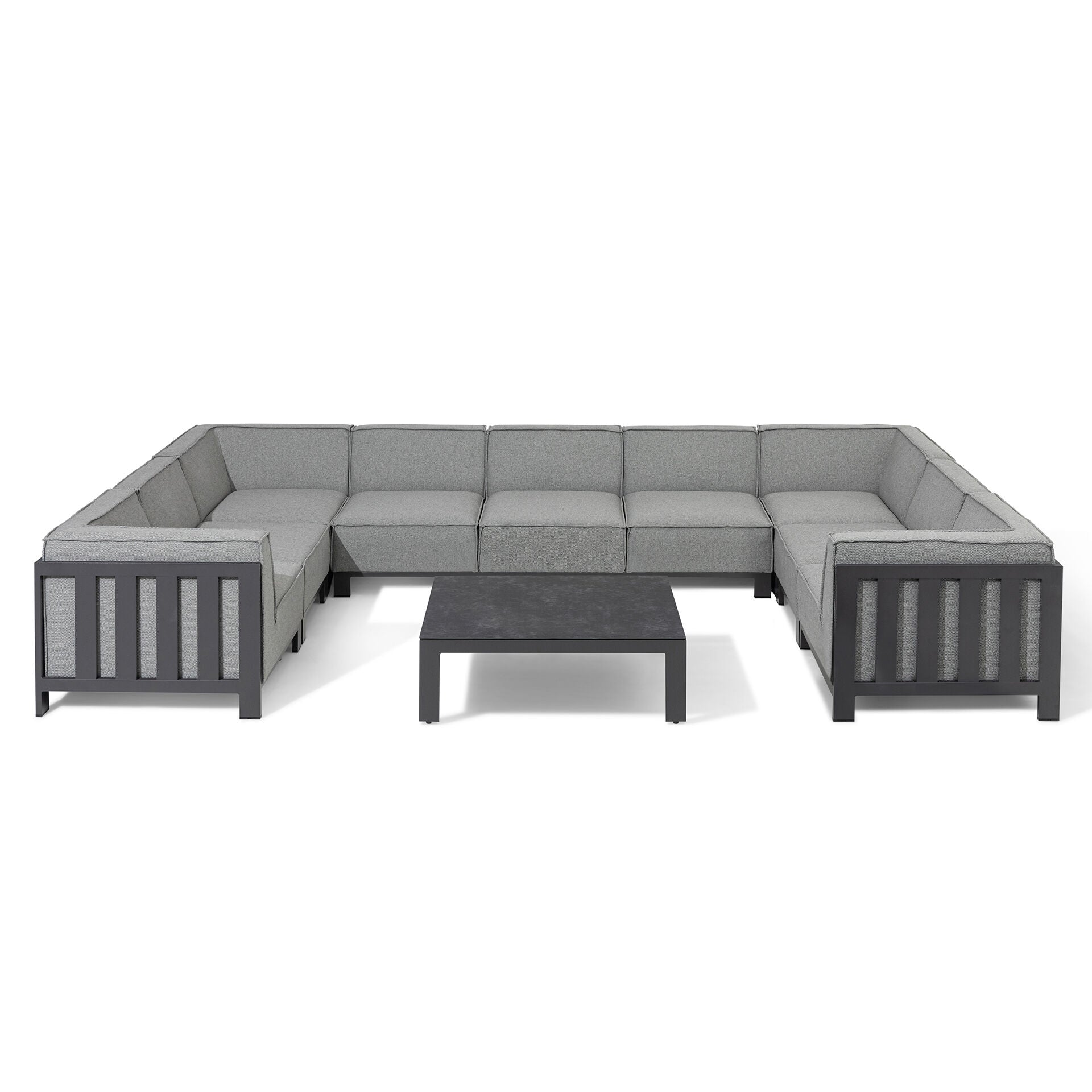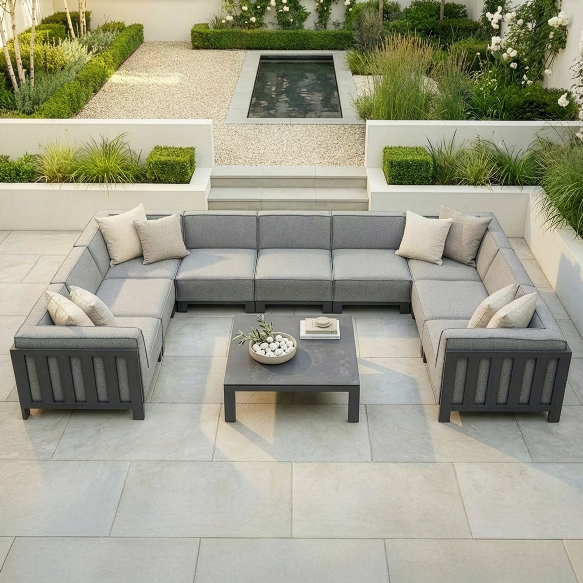 The Mykonos U-Shape Sofa Set is a versatile and stylish modular seating arrangement, perfect for enhancing your outdoor living space. Finished in a chic outdoor fabric, this set combines modern design with luxurious comfort. Its modular configuration allows you to create a wide range of seating setups using the corner and centre pieces, making it adaptable to any garden or patio layout.